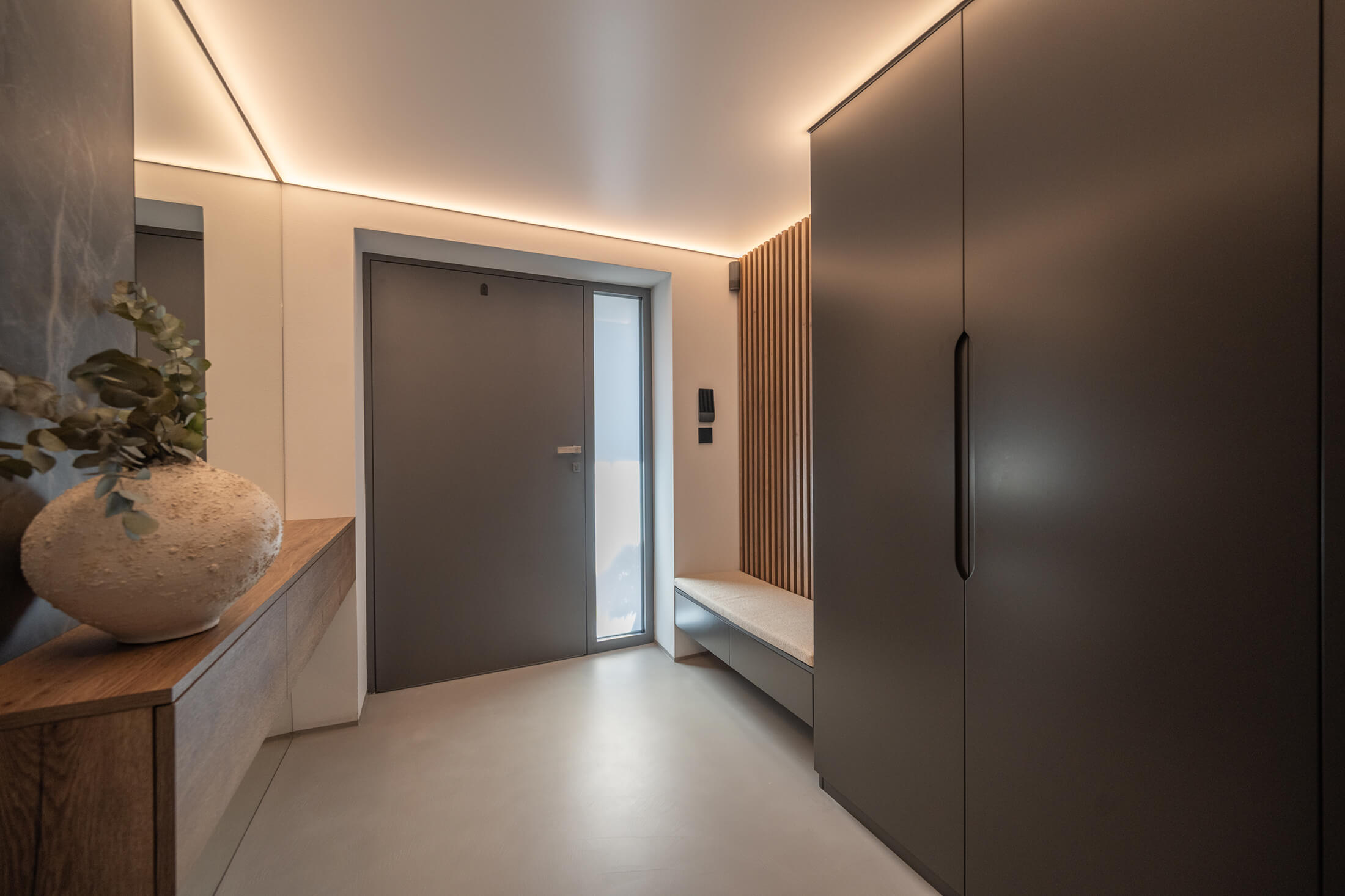 V Plzni jsme vytvořili kompletní interiér celého bytu na míru, který spojuje eleganci, funkčnost a precizní řemeslné zpracování.